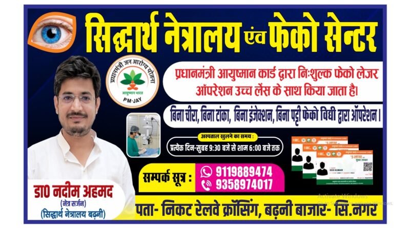 Read morenizam ansari बढ़नी (सिद्धार्थनगर): स्वास्थ्य सेवा के क्षेत्र में एक बड़ी खुशखबरी! अब सिद्धार्थ नेत्रालय, बढ़नी में मोतियाबिंद के मरीज़ों