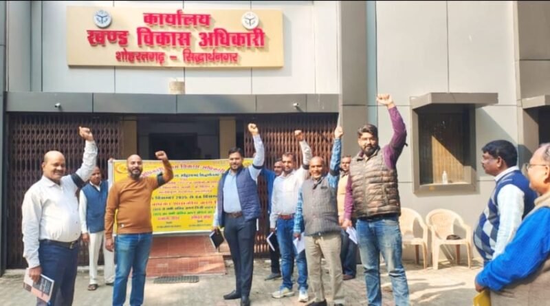 सरताज आलम शोहरतगढ़/सिद्धार्थनगर। विकास खण्ड शोहरतगढ़़ पर ग्राम पंचायत अधिकारी/ग्राम विकास अधिकारी समन्वय समिति के बैनर तले सभी सचिवों ने