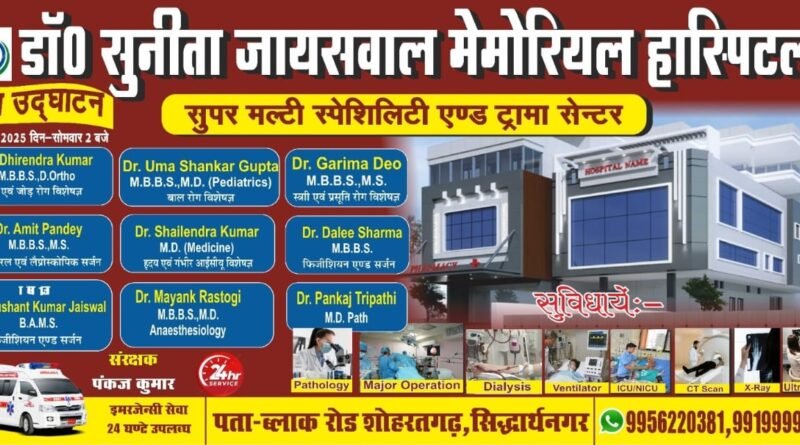 Read moreडॉ. सुनीता जायसवाल मेमोरियल हॉस्पिटल के सौजन्य से 9 नवम्बर 2025 को कोटिया बाजार से सटे जे एस ए पब्लिक
